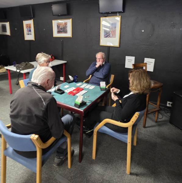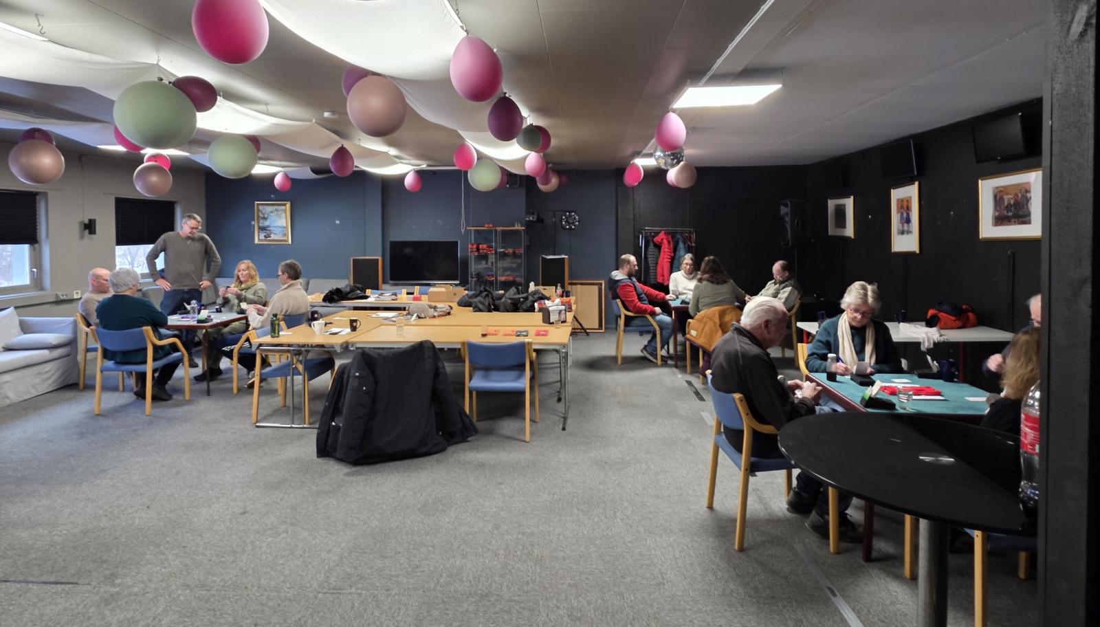 Bilder ved alle spillebordene, konsentrerte bridgespillere